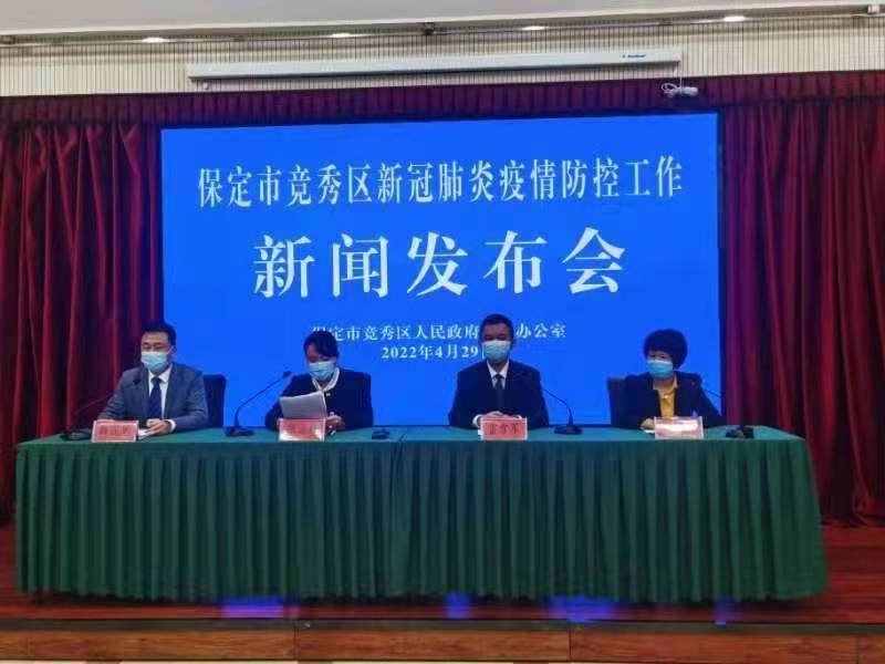 冀时客户端报道(河北台 高京原 常琛 李浩)今天(4月29日)下午,保定市竞秀区召开第四场疫情防控新闻发布会通报,4月28日0时至24时,竞秀区检出阳性感染者4例,均在集中隔离点检出,4例阳性感染者活动轨迹已公开发布。截至目前,该区共有阳性感染者15例,均在定点医院或方舱医院进行治疗和医学观察。截至4月29日12时,竞秀区已启用隔离点26个、3200个房间。
