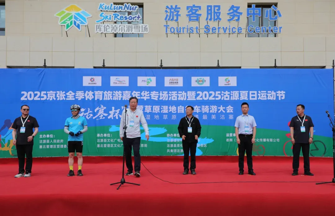 7月6日,以“穿越湿地草原 骑遇最美沽塞”为主题的2025京张全季体育旅游嘉年华专场活动暨2025沽源夏日运动节“沽塞杯”冀蒙草原湿地自行车骑游大会,在沽源县库伦淖尔景区举行。国家体育总局体育器材装备中心副主任王平,省体育局副局长田建功出席启动仪式。