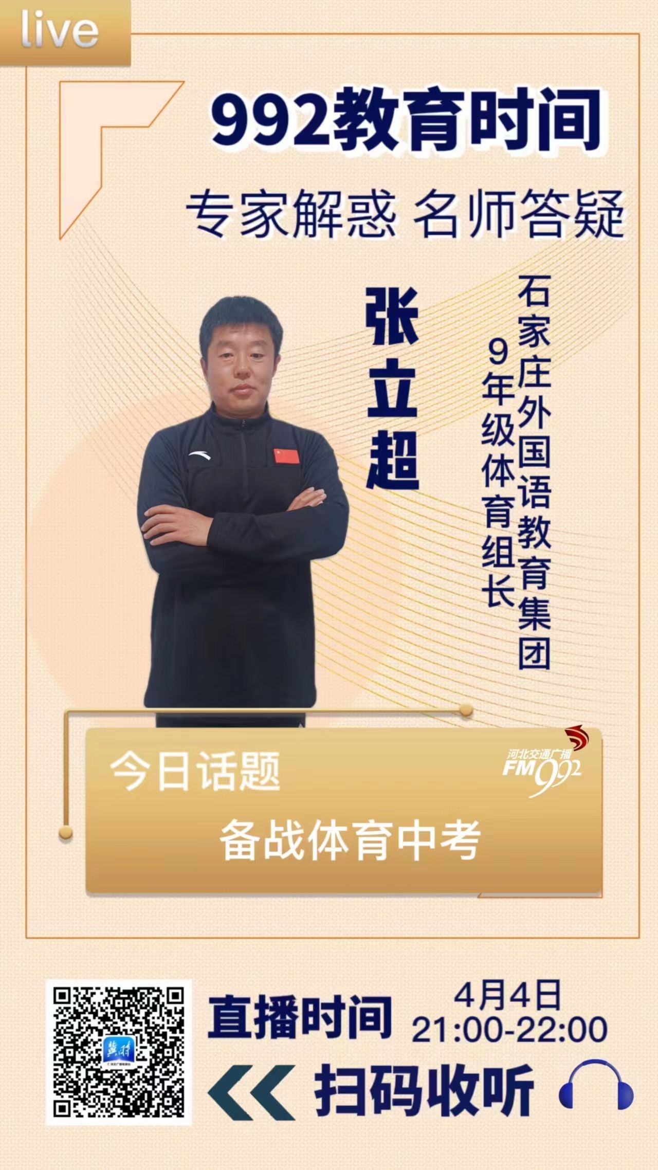 草长莺飞的春日好时光,正适合走出户外进行体育锻炼。对于此刻初三的孩子们来说,更是全力备战体育中考的的关键时期。那么如何科学运动备战体育中考?有哪些方法和技巧?初一初二的同学需要在平时的学习生活加强锻炼,如何更早的提升身体素质,提前为体育中考做准备?《992教育时间》栏目邀请到石家庄外国语教育集团9年级体育组长张立超老师为大家答疑解惑。