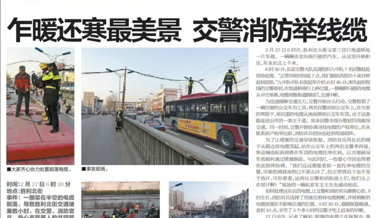 细心的网友发现,2017年2月27日在石家庄市胜利北大街义堂三岔口地道桥处,托举横跨马路、阻断交通的线缆的“托举哥”也是焦亚楠,他的同事告诉记者,焦亚楠是一个名副其实的热心肠。