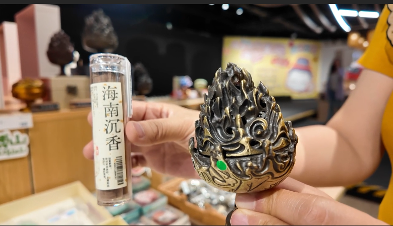 记者 毛毛:逛完展览千万别急着走,这里的文创产品,把文物元素变成了可以带回家的记忆。比如这款长信宫灯的书签,每一页撕开都是灯光渐亮;还有这套博山炉主题的套装,点燃一支仿佛就能闻到汉代仙山的草木气息。