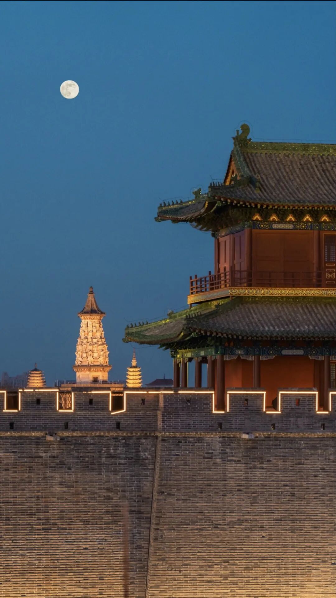 动态抓拍:撩帘子、推窗、低头抚琴、回头一笑……别总站着比✌️,动起来更有戏!必拍机位:走在穿堂长廊、雕花窗前,红墙竹影更是天然画框,随手一拍就是“深宅大院的故事感”。夕阳把古城染成琥珀色,看远处临济寺澄灵塔、凌霄塔、须弥塔、广惠寺华塔……错落有致地浮在天际线上。从左到右依次为广惠寺·华塔、开元寺·须弥塔、天宁寺·凌霄塔、临济寺·澄灵塔