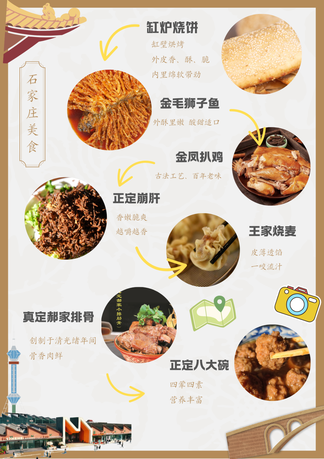 太行窑洞的古朴与现代野奢相融,既有石墙小院的静谧私密,又有全景落地窗的开阔视野,晨起闻鸟鸣,推窗见青山。一场酣睡好眠后,可以在山谷影院感受浪漫,在KTV欢聚,在无边泳池、健身房、网球场、瑜伽室舒展身心,挥洒汗水,再享受一份精致下午茶,品尝一顿花宴大餐……在这里,彻底放空自己。🍜藁城宫面:细如发丝、空心均匀,真空包装便于携带,煮后口感筋道爽滑。🐔真定府马家卤鸡:香飘百年,咸香软烂,肉质紧实不柴,真空包装好带走。🏺河北博物院文创:长信宫灯冰箱贴、金缕玉衣书签,自留送人都🉑。🎁还有石家庄特色文创店,红色记忆伴手礼、地标冰箱贴、剪纸钥匙扣、城市明信片……寄给朋友或者自己收藏都超有意义。这里有1600多年的正定古城红墙黛瓦间藏着半部中国史有全国顶流的夜市几百个摊位把人香迷糊有电影同款的悬空寺站在桥楼殿上腿软心也颤有百年法式小洋楼里的下午茶它可以很古古到让你在隆兴寺的倒坐观音前美到词穷也可以很新新到在老棉纺厂的咖啡馆里喝出松弛感