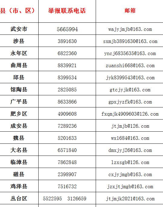各县(市、区)监督举报电话和邮箱↓↓↓