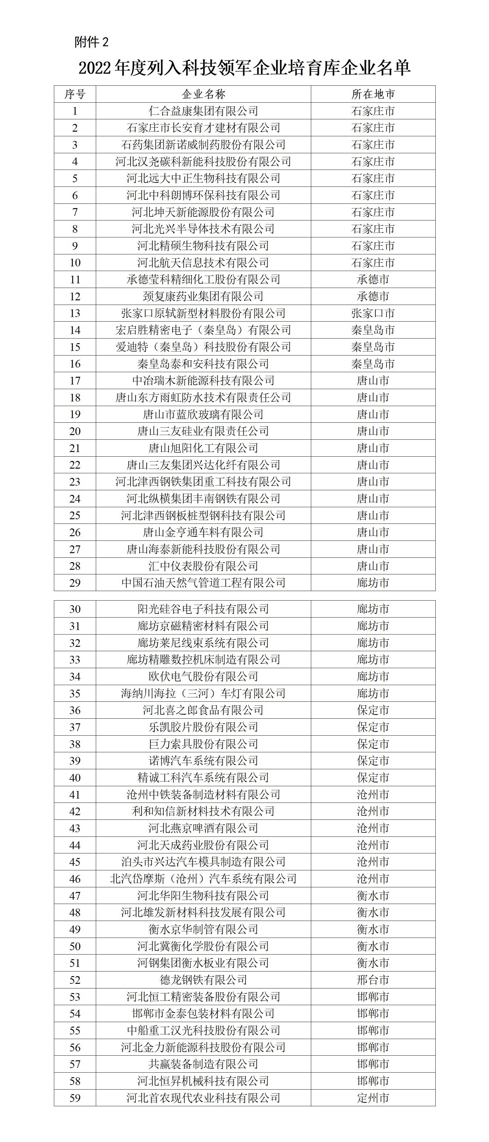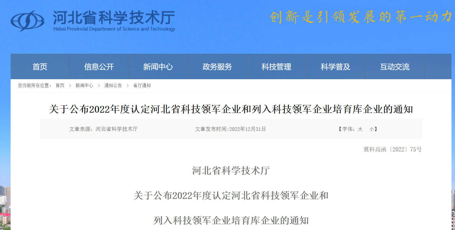 为推进科技企业发展,培育我省战略科技力量,按照《河北省科技领军企业认定管理办法(试行)》(冀科高〔2020〕10号),省科技厅组织了2022年度河北省科技领军企业认定工作。石家庄安瑞科气体机械有限公司等20家高新技术企业被认定为河北省科技领军企业,仁合益康集团有限公司等59家列入科技领军企业培育库(具体名单附后)。