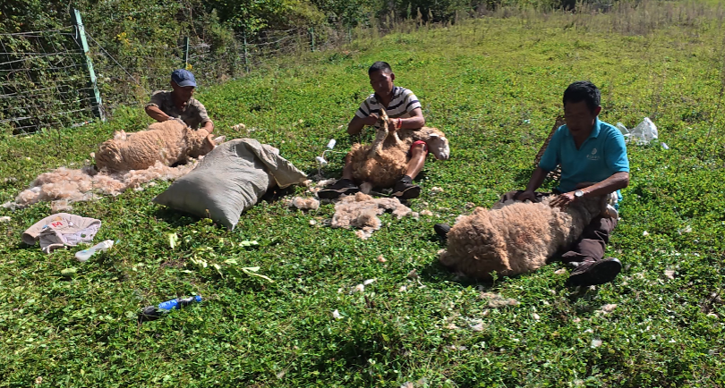 漫山遍野的半细毛羊,是三河村的第三个 “宝贝”。山坡上,几位老乡正忙着剪羊毛,说起自家的羊,他们满脸自豪。“这是本地羊,最值钱的那种!一只能卖一千五左右,从小羊长到能卖,只要五六个月,能赚一千块呢!”