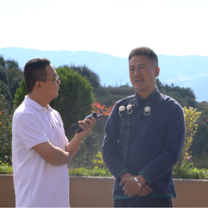 ▲四川台记者采访三河村党支部副书记洛古有格
