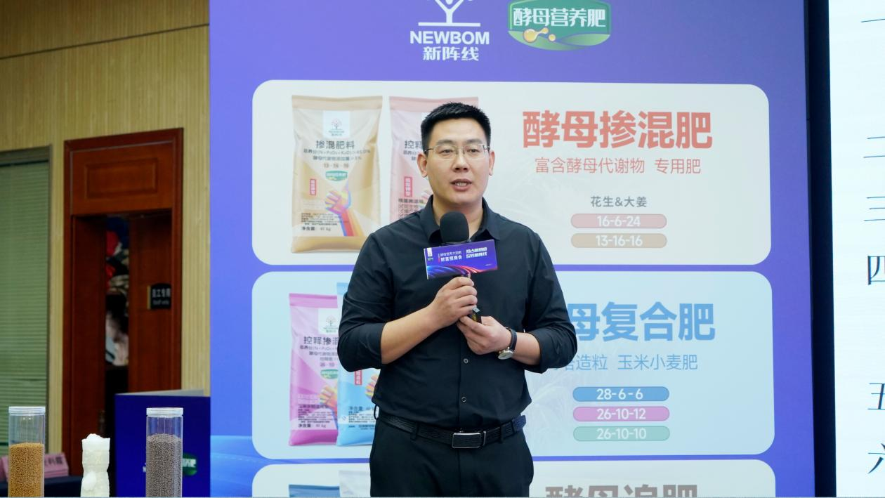 张淑伶介绍安琪酵母如何运用其核心生物技术开发出既环保又高效的新型肥料——安琪新阵线酵母营养大田肥。产品针对作物生长所需,精准调配了氮、磷、钾等基础养分,并结合了丰富的酵母代谢产物及衍生物,如酵母多糖、酵母蛋白、海藻糖以及多种酵母来源的氨基酸。这些成分共同作用下,能够促进作物根系发展,增强植株健壮度,提高抗逆性,从而增加产量并改善作物品质。经过长期田间试验验证,安琪新阵线酵母营养大田肥不仅有效减少了农业生产中的投入成本,而且显著提升了最终收成与经济效益,赢得了市场的广泛认可。