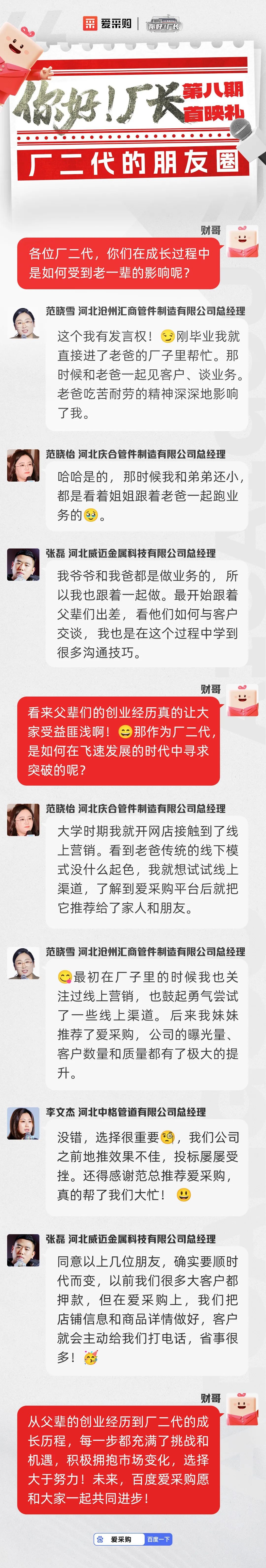 爱采购一直深耕B2B行业,深知中小企业在数字化转型中所面临的困境与挑战。而中国厂长作为国民经济的重要支柱,应该得到更多的社会关注和认可。本次《你好!厂长》第八期作为2024年收官之作,与央视频联袂打造,希望能让更广泛的人民群众见证厂长们奋斗的模样;也希望这些优秀厂长的故事,能为万千企业家指引方向。