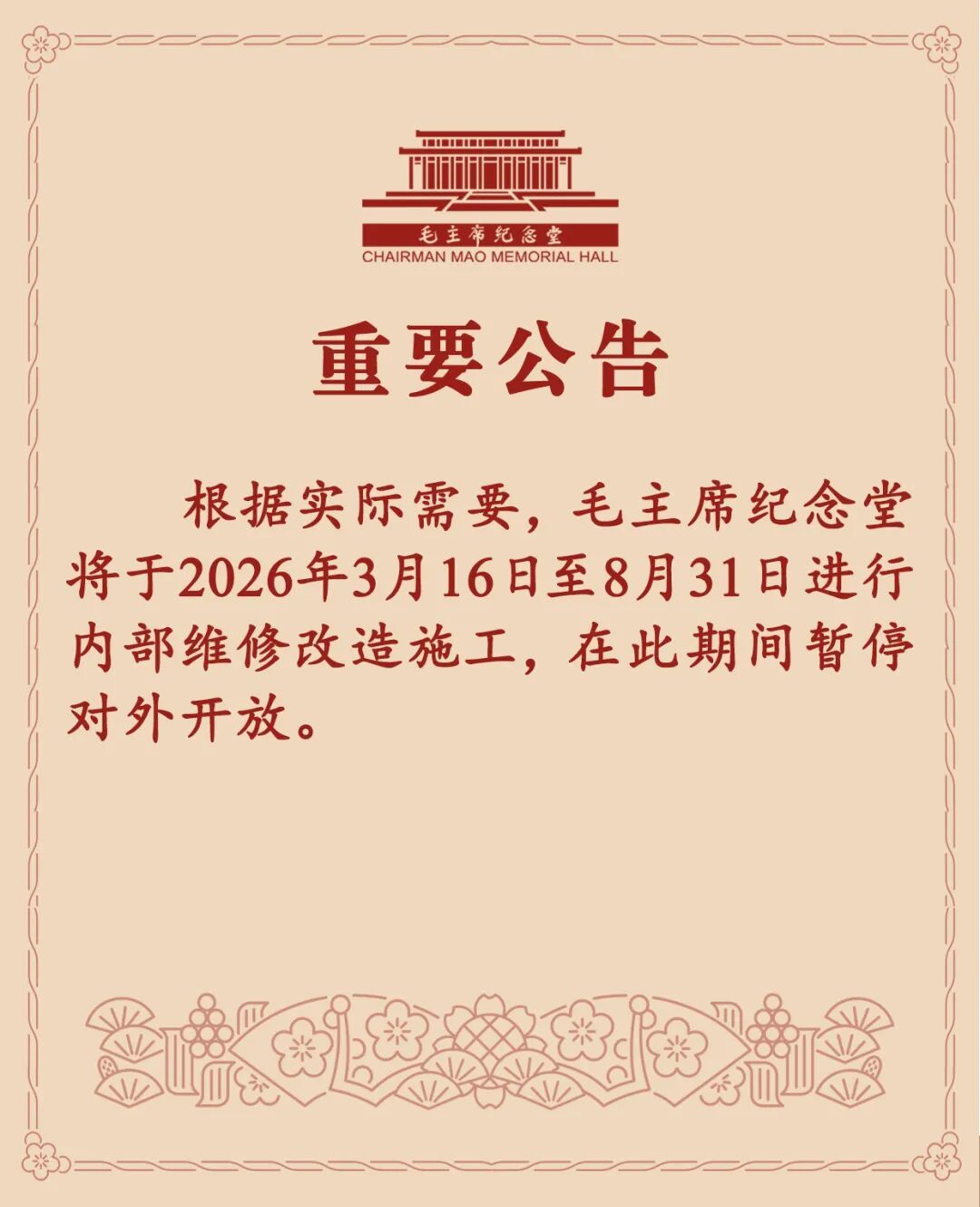 毛主席纪念堂官方公众号2026-03-13 14:59:45