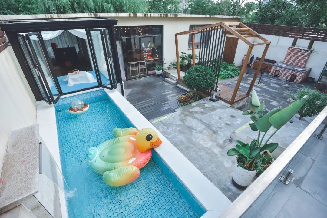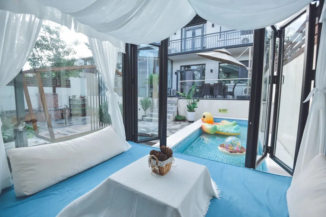 桃花树下书屋是一间公益书屋,也是一间可以住宿的书屋民宿。这里可以满足独立住宿、亲友聚会、企业团建等不同群体的多样化需求。陈晨介绍,桃花树下目前两个院子,有小朋友喜欢的游泳池,书屋图书近千册,适合大家庭出行,也适合小型的团建项目。来桃花树下既可以自己动手做餐食,也可以提供当地特色的铁锅炖、北戴河的特色海鲜餐,为大家准备全羊宴。