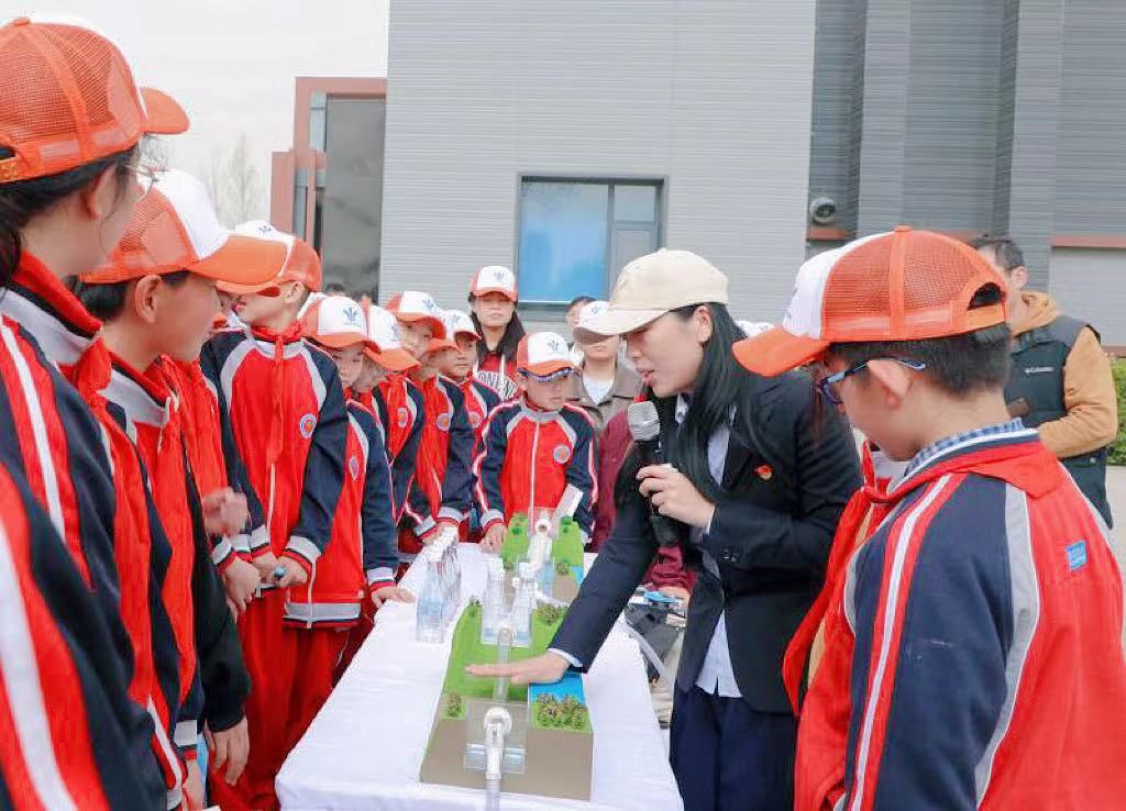 活动在南水北调中线河北分公司及河北省河湖长制办公室有关负责同志致辞后正式开始。首先,参加活动人员集中观看了滹沱河倒虹吸工程介绍宣传片及河北省河湖长制公益宣传片,详细了解了滹沱河倒虹吸基本运行情况及河北省河湖长制有关依法护水的公益提示。随后在活动布设的展板区,现场一线职工结合展板娓娓道来,从“世界水日”到“中国水周”,从滹沱河的历史变迁到与南水北调因水结缘,从南水北调工程供用水管理条例的颁布到工程全面落实河湖长制,一堂诚意满满的南水北调“公开课”得到了大家的纷纷点赞。而在工程模型展示区,工作人员利用工程输水模型,在桌面上模拟展示了何为“倒虹吸”及南来江水如何通过倒虹吸穿越滹沱河河道一路北上,配合通俗易懂的讲解,为参与学生们直观地普及了南水北调工程知识。