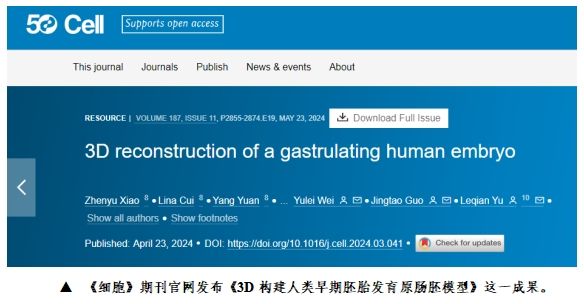 此前,4月23日,中国农业大学魏育蕾与中国科学院动物研究所于乐谦、郭靖涛团队,共同在另一份国际权威学术期刊《细胞》(Cell)上发表重磅文章《3D构建人类早期胚胎发育原肠胚模型》,首次揭示人类胚胎尾端信号源调控原肠运动,为探究人类极早期胚胎发育进程打开了一扇全新的大门。