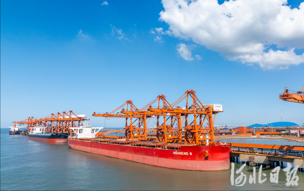 9月6日,河北港口集团曹妃甸矿石码头一片繁忙景象。(河北日报资料片)记者赵杰摄