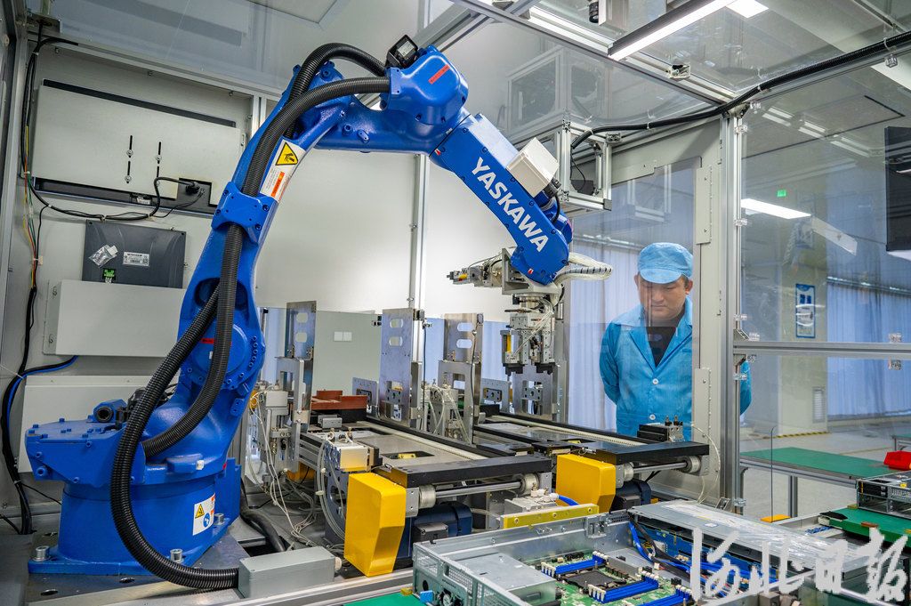 位于张家口市的宝德数坝数字产业(河北)有限公司,机器人在组装服务器。(河北日报资料片)记者赵杰摄