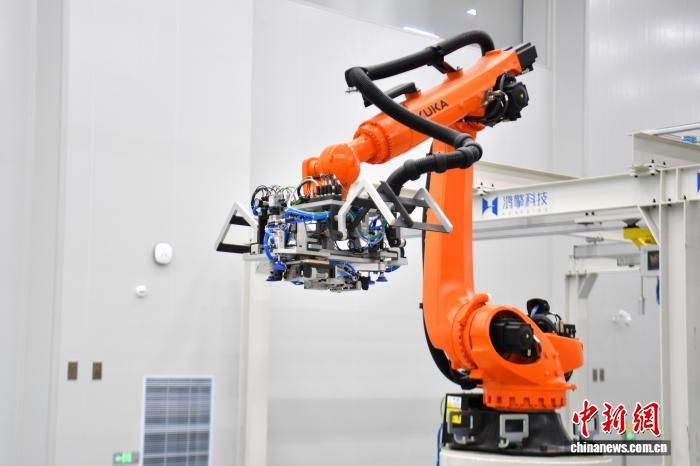 10月22日,蓝箭鸿擎(雄安)空间科技有限公司卫星智能制造中试基地正式落成,首颗“雄安造”卫星——“雄安一号”(鸿鹄技术验证星)完成生产下线,标志着雄安新区空天信息产业智能制造能力实现从“0到1”的重大跨越。图为蓝箭鸿擎(雄安)空间科技有限公司卫星智能制造中试基地内的生产线。 中新网记者 韩冰 摄