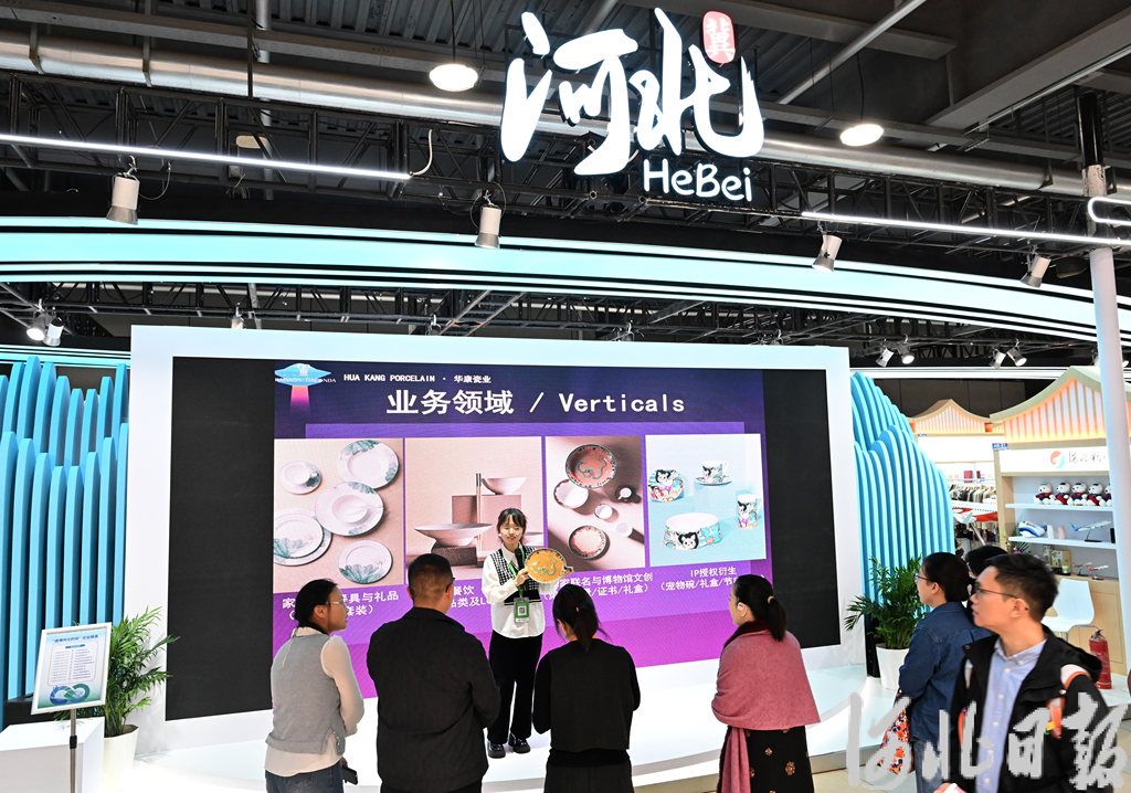“这是我们联合北京艺术家设计开发的新款骨质瓷餐盘,以龙和马为图案,寓意中国的‘龙马精神’。”11月7日10时许,在河北省特色产业带产品主题展区,石家庄市矿区华康瓷业有限公司运营助理王丹携带新产品登场,向全球客商展示公司瓷器的工艺特点与产品优势。
