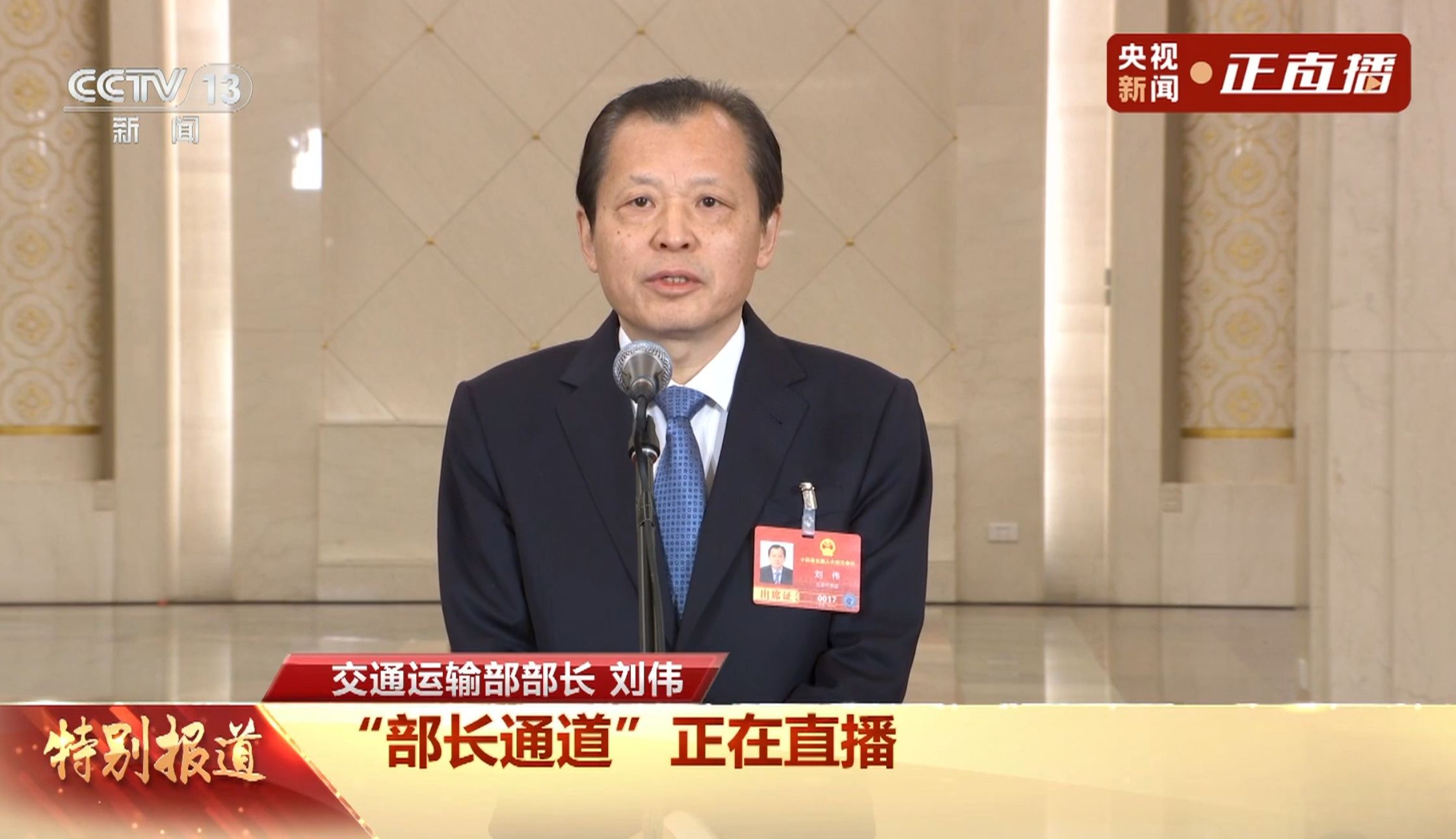 3月9日,十四届全国人大四次会议第二场“部长通道”在人民大会堂举行,交通运输部部长刘伟接受记者采访。