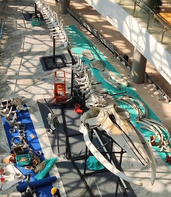 上海自然博物馆长须鲸骨骼标本组装现场 图/受访者提供