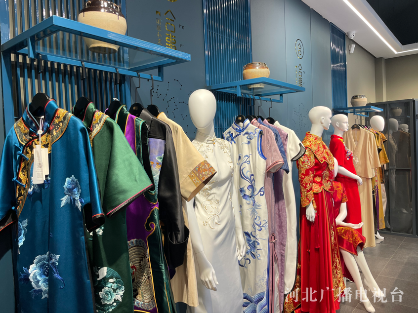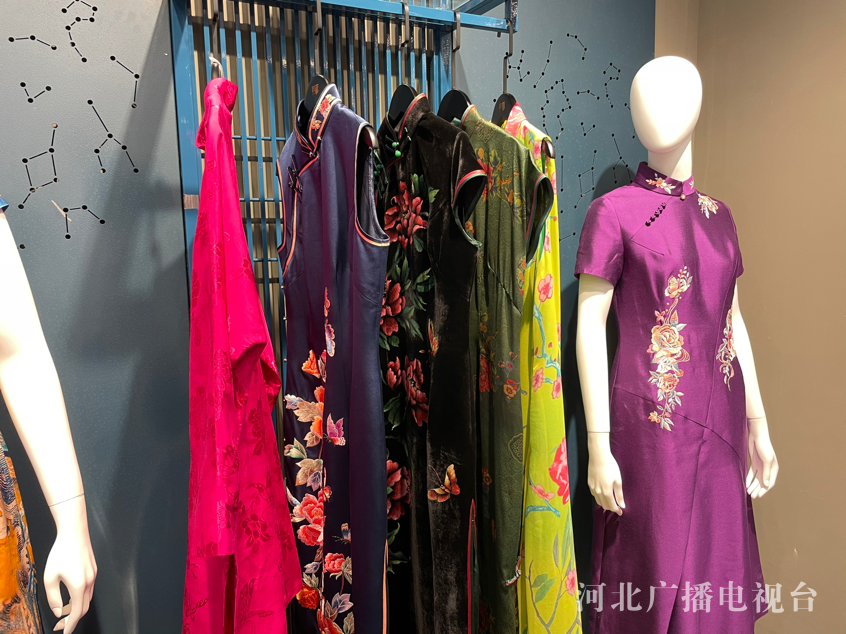 一号展厅是合事国服系列展:包括旗袍、汉服、唐装、中山装等。合事品牌秉承“国潮”+“新潮”的经营理念,把国学文化元素与现代创新思维进行有机的结合,融合非遗刺绣元素,完美地打造合事国服系列。