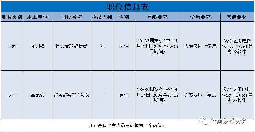 根据工作需要,县人力资源和社会保障局委托行唐发投劳务派遣有限公司面向社会公开招聘13名派遣制人员,派遣到县纪委、龙州镇从事纪检辅助性工作