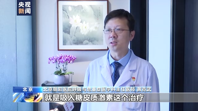 北京朝阳医院呼吸与危重症医学科主任医师黄克武:那么这个治疗里边非常重要的就是吸入一些药物,吸入里面非常重要的药物就是吸入糖皮质激素治疗,那我们要劝导患者,特别是我们绝大多数患者一定要在医生的指导下规律性的使用这个药物,因为这个是针对哮喘的病根来进行治疗,我们如果规律性的用,那么这些患者他可能就从来没有急性的发作,或者即使有这个急性发作,那么这个急性发作也是可控的,症状也不会那么重。