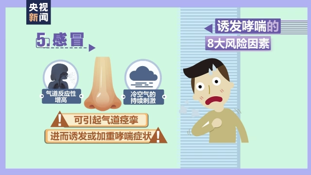 感冒后可引起气道反应性增高,再加上冷空气的持续刺激,可引起气道痉挛,进而诱发或加重哮喘症状。