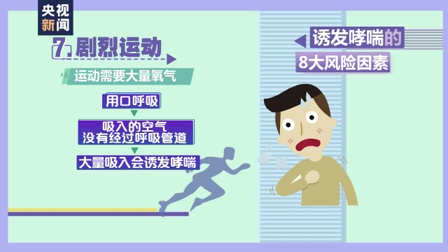 因为运动的时候需要大量氧气,这个时候就会用口呼吸,而吸入的空气没有经过呼吸管道,如果大量吸入会诱发哮喘。