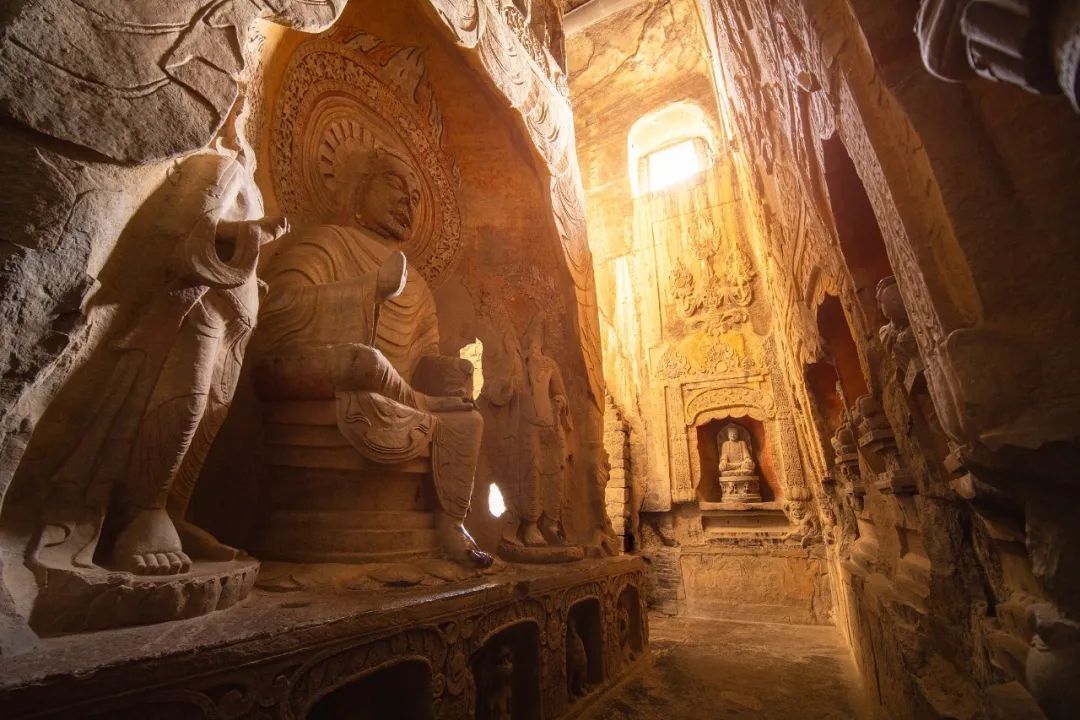 阳光洒在响堂山石窟里
