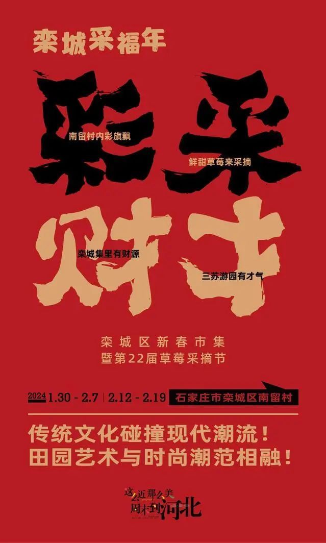 为了进一步擦亮栾城草莓名片,吸引更多的游客前来采摘和尝鲜,栾城区新春市集暨第22届草莓采摘节定于1月30日在栾城区冶河镇南留村开幕。