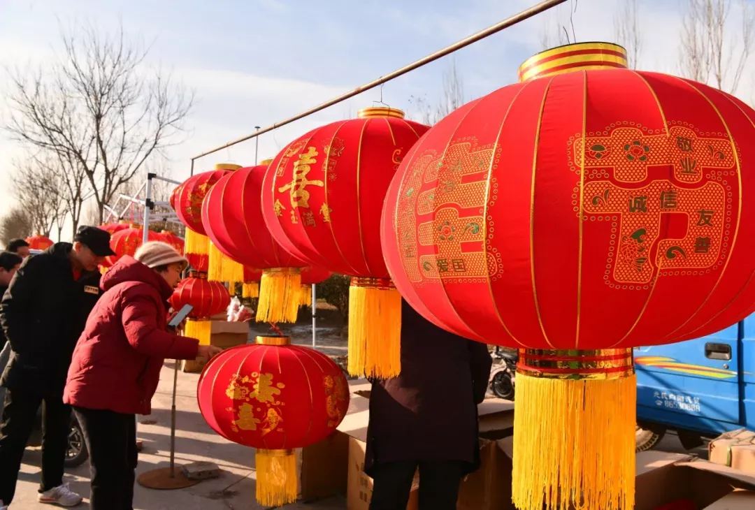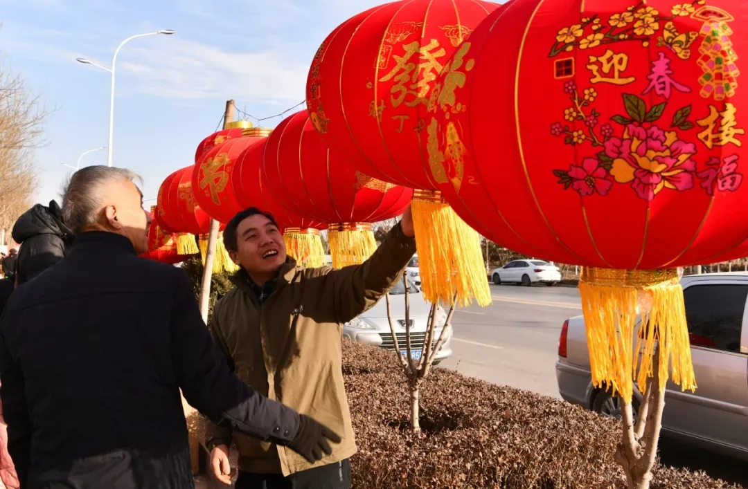 (居民在挑选大红灯笼)