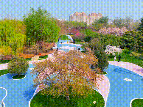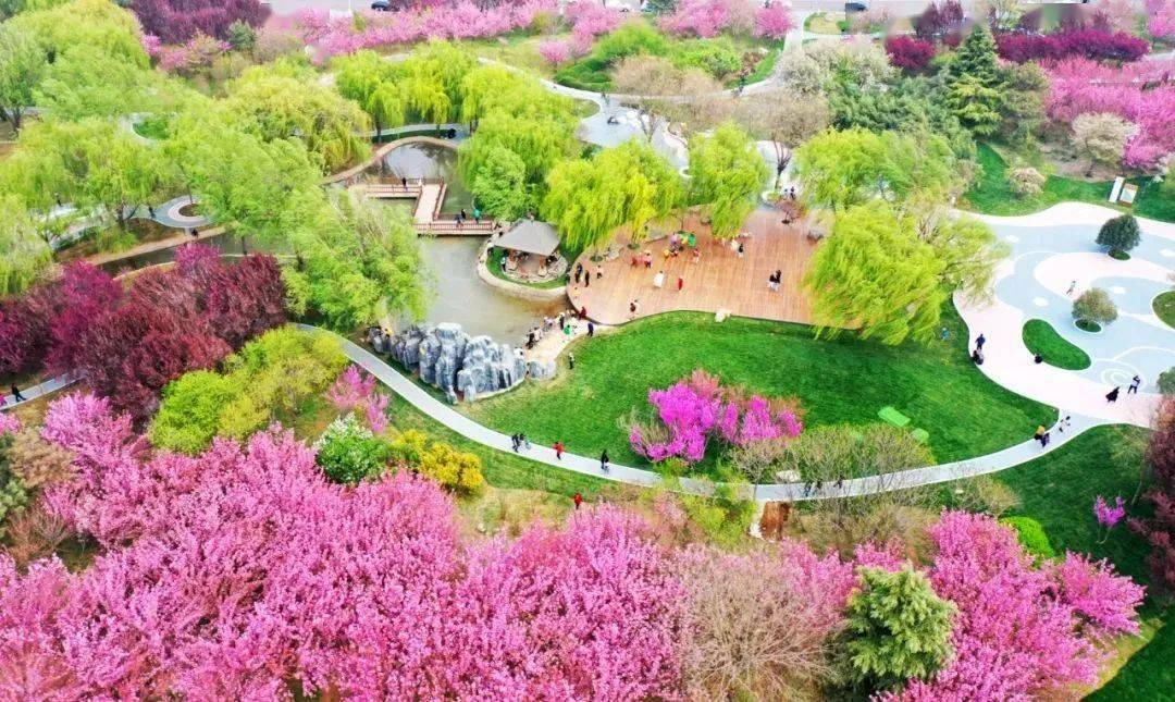 石栾大街与栾武路交叉口的樱花公园,占地300余亩,种植樱花、海棠花万余株。4月初正值繁花盛放期,园内春花烂漫、花雨缤纷,满园的芬芳为春色增添了别样的浪漫气氛。