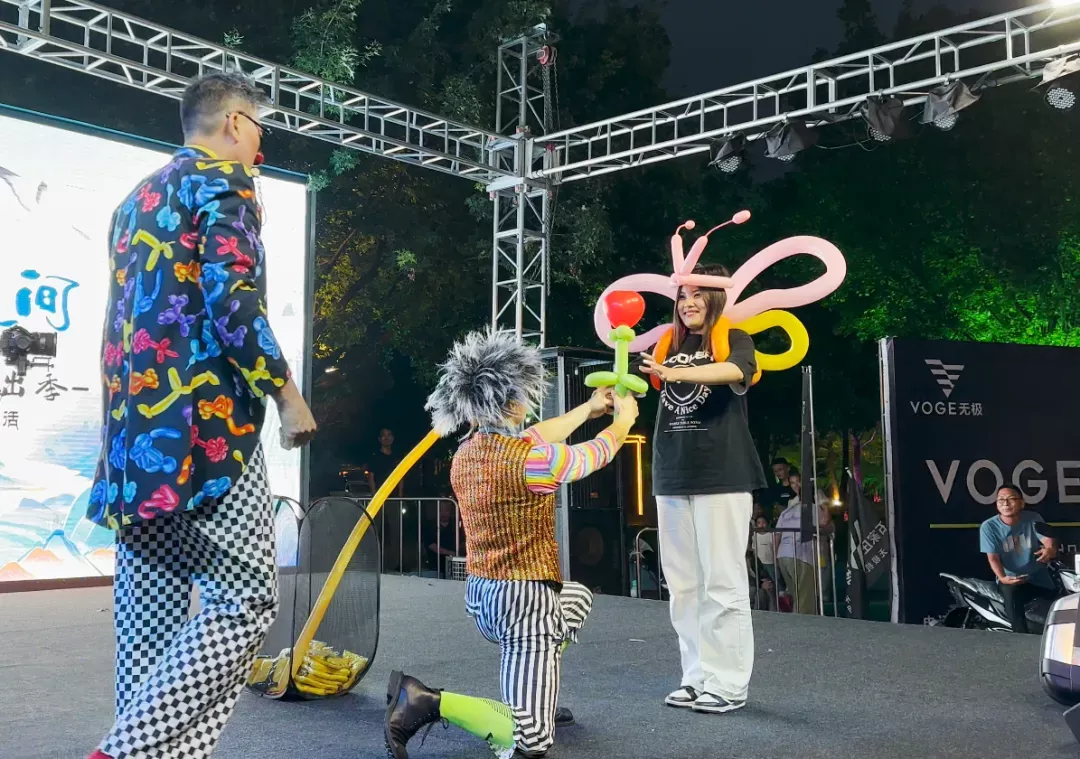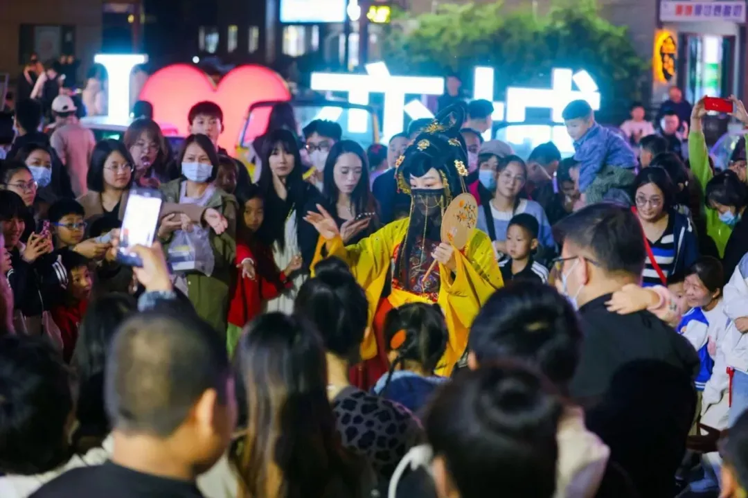 古风互动舞台上不倒翁小姐姐、川剧变脸、花样舞蹈带你体验精彩表演,更有东坡说,苏小妹招婿等实景互动演艺,带你穿越千年,梦回大宋。