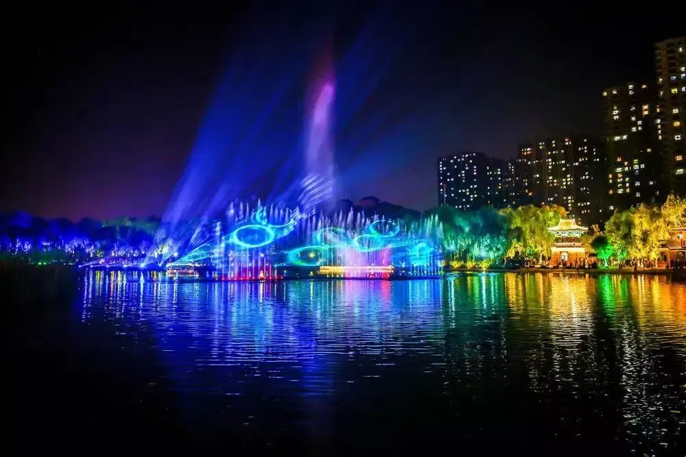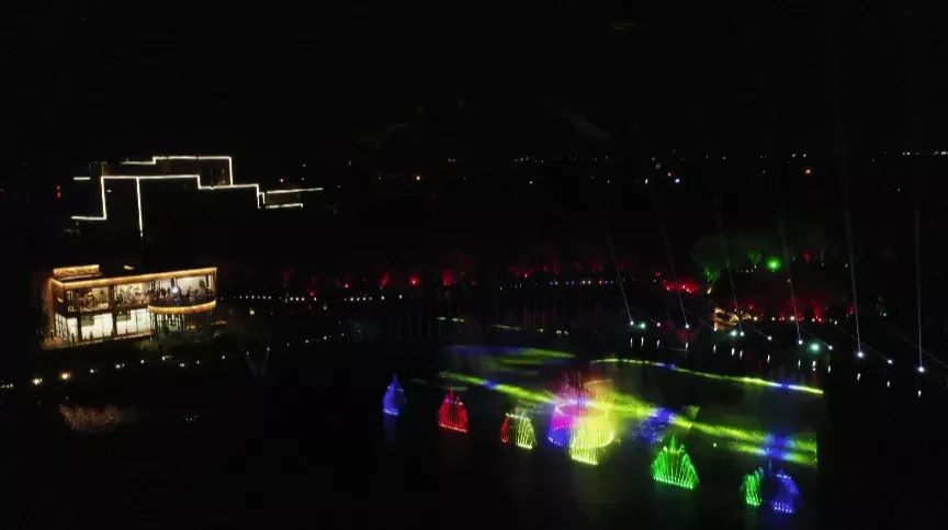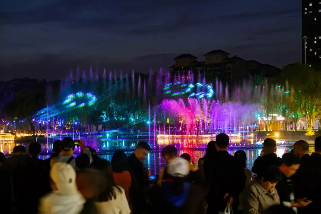 诗情画意,醉美古栾。节日期间古栾小西湖沉浸式演艺精彩上映,配合音乐喷泉秀和水幕电影打造湖上沉浸式演艺。