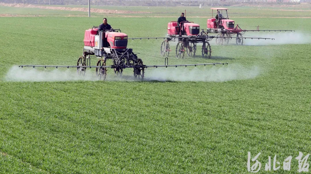 3月12日,邢台市南和区北高五村农民驾驶农机在麦田喷洒农药。河北日报通讯员杨献波摄