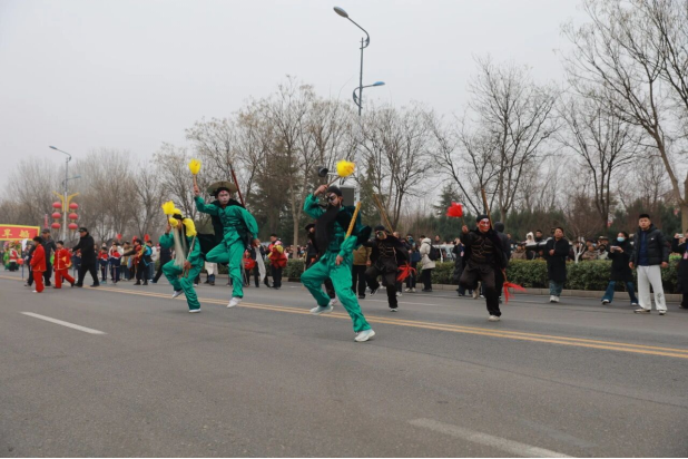 元宵节前夕,邯郸峰峰矿区一年一度的元宵民俗文化展演活动火热启幕,40个独具地方特色的节目轮番登台,国家级非遗与传统民俗集中亮相,其中传统武术表演成为全场一大亮点。由20个特色方阵、4000余名表演者组成的大型巡游队伍,从峰峰博物馆出发,沿响堂大道沿街展演,舞龙舞狮、传统武术等极具地域特色的民俗项目轮番登场,现场锣鼓喧天、彩绸飞扬,表演者精神抖擞、热情洋溢,沿途观众驻足围观、喝彩不断,处处洋溢着喜庆祥和的节日氛围。