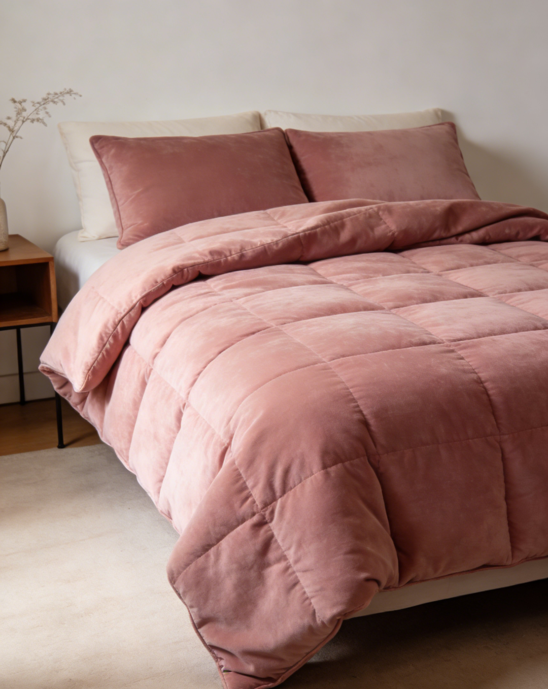 这种颜色自带温暖、被呵护的感觉,能营造出温馨的睡眠氛围,适合女生、情侣,或者性格敏感、缺乏安全感的人。建议搭配浅灰色或米白色的床品配件,避免整体过于甜腻。