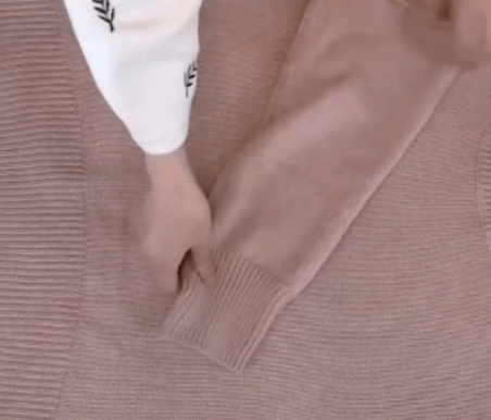 收纳时,将毛衣摊平铺好,袖子交叉放平,将衣服的一侧往里折一半,将毛衣底部向上折三分之一,再将毛衣顶部塞进去。