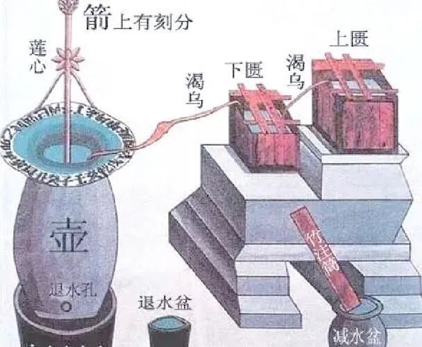 其中,有用于计时的刻漏,也叫水钟,通过水滴漏的方式计量时间,有些精密水钟还设有报警装置,当水达到一定水位时,会触发机关发出声响。