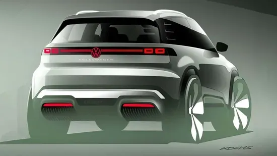 作为参考,ID.2all概念车在2023年发布,定位于小型五门两厢车,甚至还衍生出一款ID.GTI概念车。从设计草图来看,新车延续了电动车概念化的设计思路,配备贯穿式灯带、点亮的品牌Logo以及大尺寸轮毂。相比ID.4,新车整体造型更为方正,尾部还加入了对比色C柱设计,进一步凸显跨界风格。虽然草图未展示门把手,但预计量产版将配备常规设计,车身细节或采用黑色防擦条以增强SUV属性。