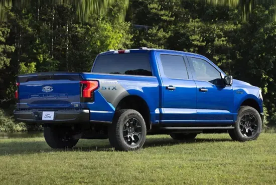 车侧多以平直的线条勾勒,和燃油版F150车型同款的脚踏也应用到了新车上面,方便用户上下车。车尾造型比较简约,黑色的包围和造型别致的尾灯辨识度很高。