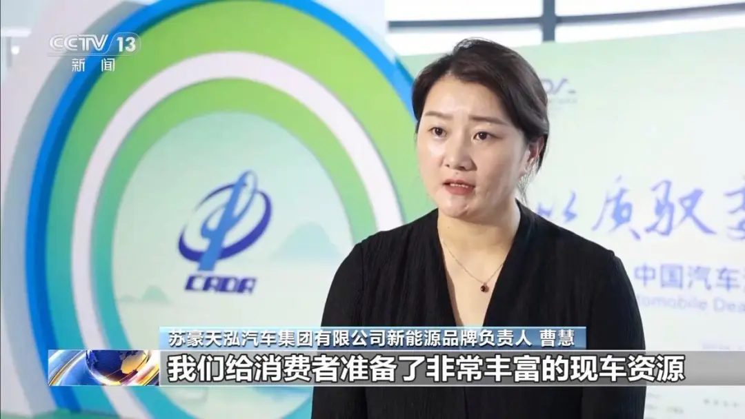 苏豪天泓汽车集团有限公司新能源品牌负责人 曹慧:我们给消费者准备了非常丰富的现车资源,让消费者真正能够抓住购车黄金期,享受全免政策的红利。