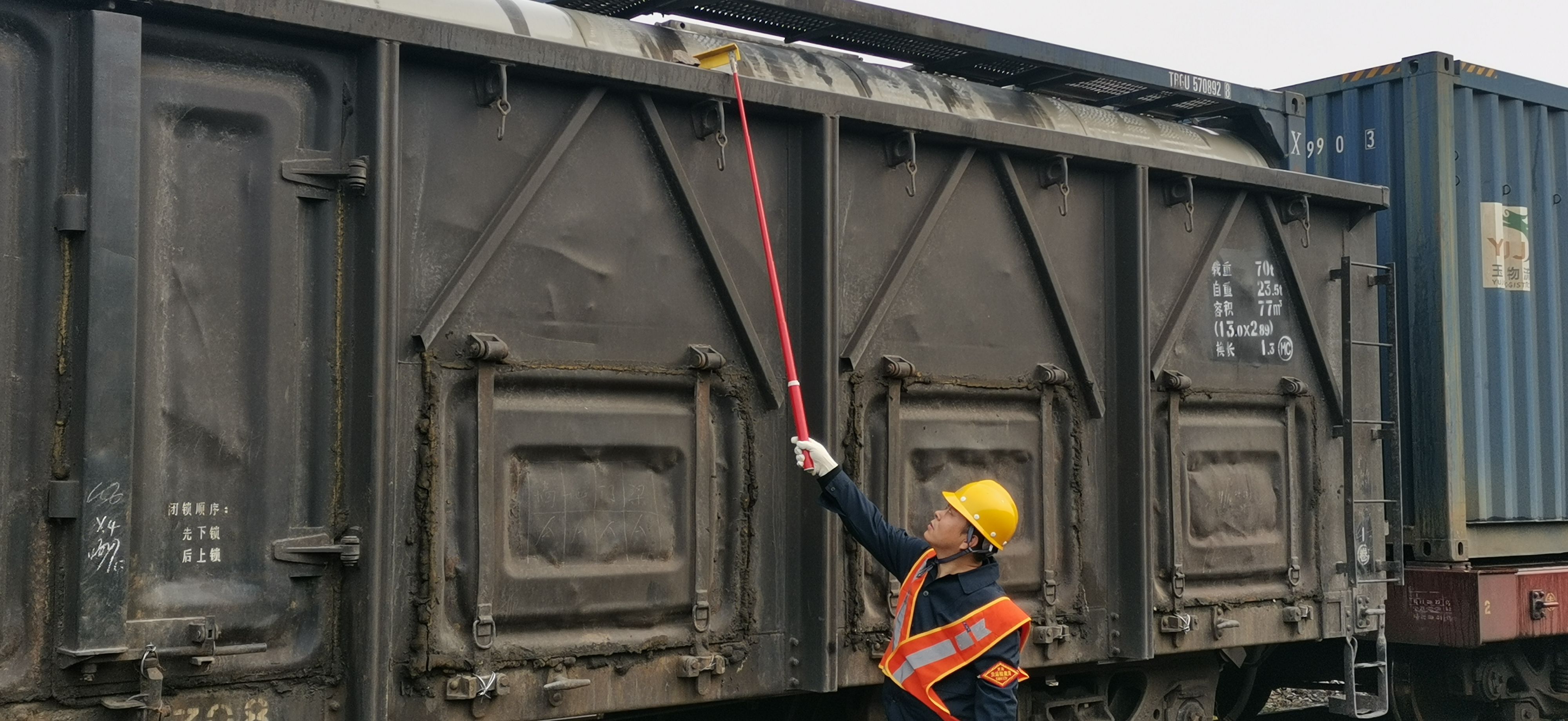 铁路运输工作就像一个大联动机,任何一个环节的问题都会影响整个机器的运转,产生不良效果。货检工作主要是检查货物的装载加固状态。现实中,很多运行的货车车体存在残留物,有击打客车或者刮打行车设备的隐患,对这些残留物,特别是刁钻位置残留物的整理,给货运检查员带来极大的困扰。