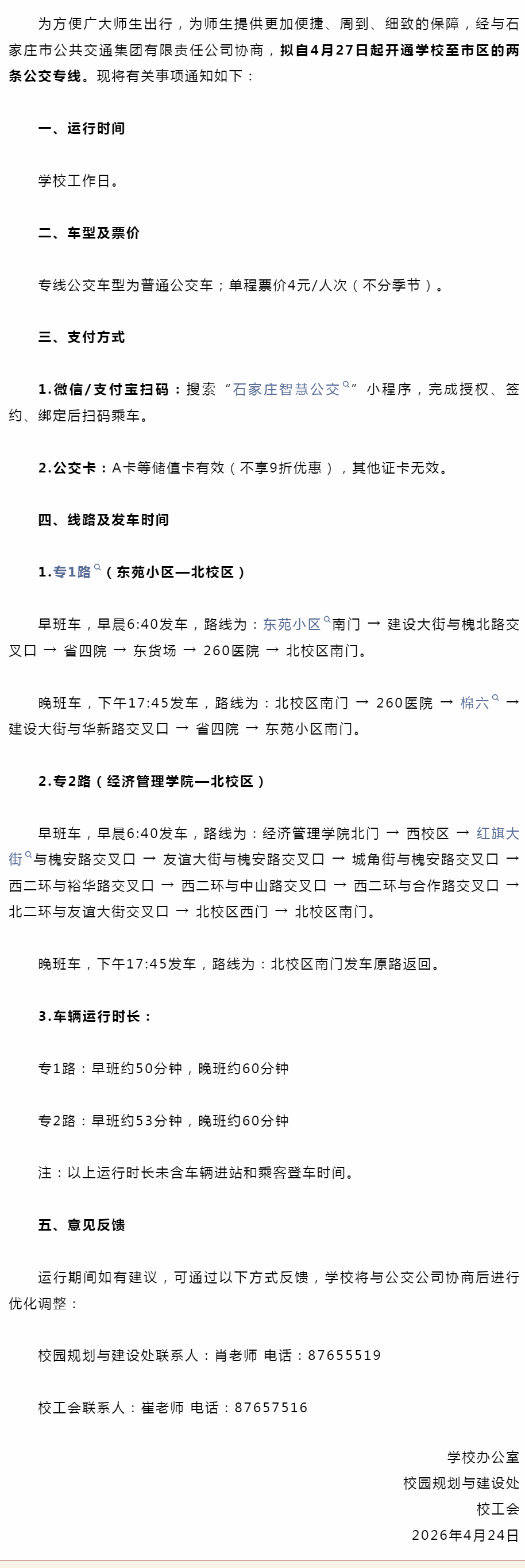 明日起,河北经贸大学公交专线拟开通!