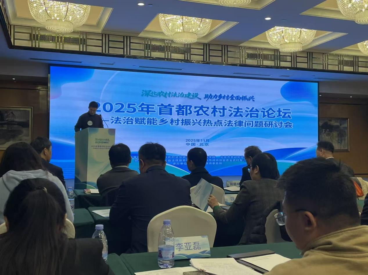 11月29日,由北京市法学会农村法治研究会、北京农学院、北京市劳动和社会保障法学会主办,北京市公益法律服务促进会、北京市律师协会农业农村专业委员会协办,北京福茂律师事务所承办的“深化农村法治建设 助力乡村全面振兴——2025年首都农村法治论坛”在北京成功举行。本次论坛聚焦法治赋能乡村振兴中的热点法律问题,吸引了来自全国各地的专家学者、法律事务工作者及相关机构代表齐聚一堂,共同探讨农村法治建设的前沿议题。