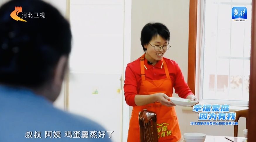 《“冀”高一筹》大赛的最后一个环节,是高度还原真实服务场景的考核。李军田抽到的任务是:为一对老夫妇服务,他们的女儿即将从外地回家,需要在规定时间内完成家居整理、为一家三口准备午餐,包含手擀面、鸡蛋羹、一个凉菜、一个热菜。