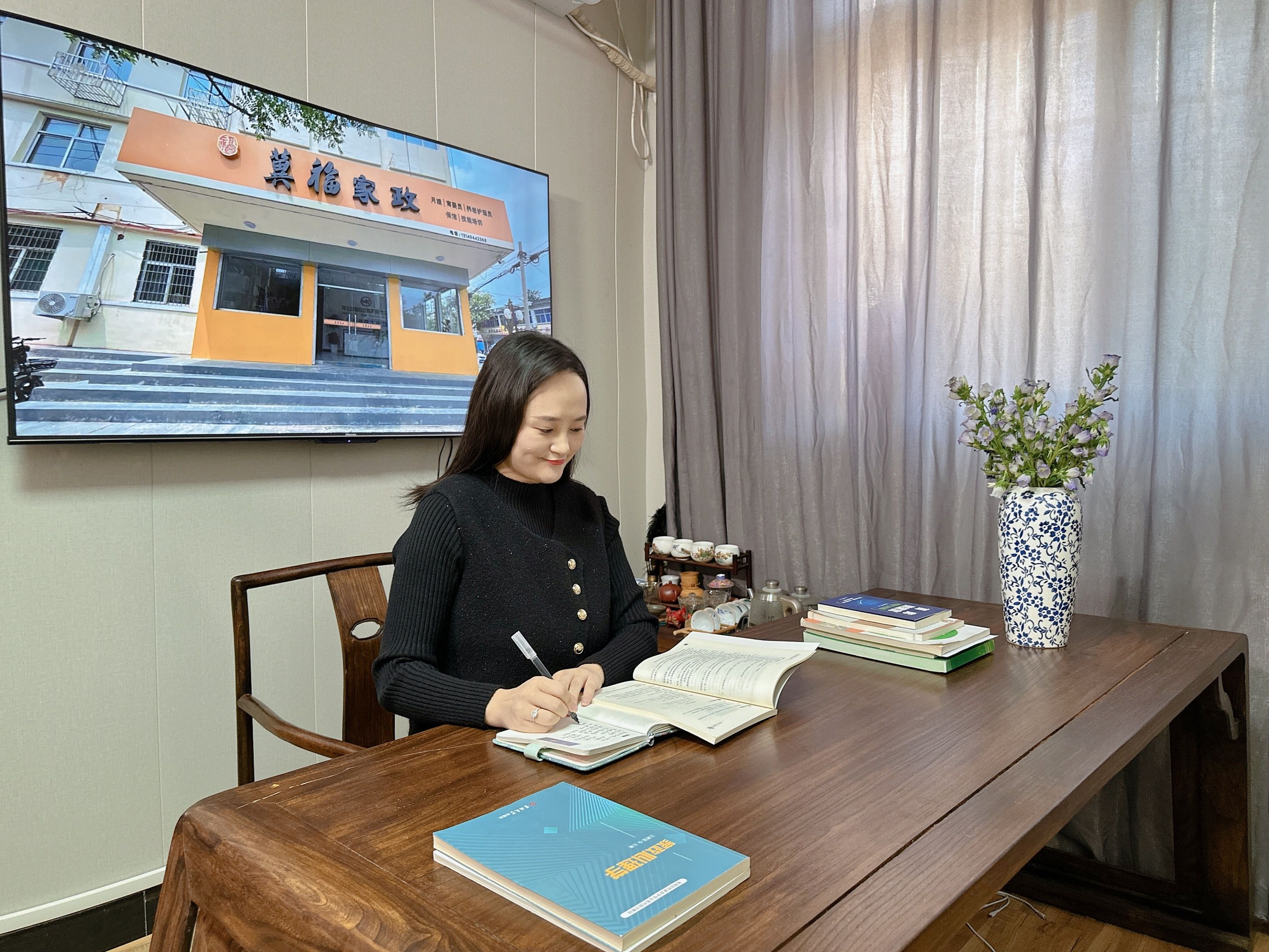 孙新娜:像来我们这培训的都是一些农村的妇女,刚开始都比较自卑。印象比较深刻的,你像我们冬天的时候培训的一个来自咱们灵寿农村的大姐叫周咏梅。她刚开始来咱们公司培训特别自卑胆小,也不敢说话,因为没有底气。后来经过一系列的培训育婴师,她也特别刻苦,因为她文凭也不是很高,可是这个姐姐特别努力,每次老师讲的课,她那个笔记本上写得密密麻麻的,而且因为她离我们学校比较远,每天一大早,冬天特别冷,她提前一个小时就开始坐车到咱们学校来。每天早来晚走,因为老师每次走的时候她就拽住老师问问题,问她今天不懂的一些知识,就特别刻苦。