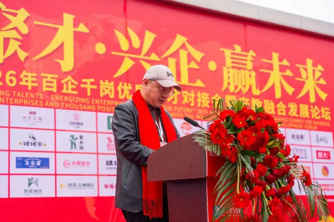 企业代表西安兰湘子餐饮管理有限公司河北厨政大区总黄立胜登台致辞。黄立胜代表所有参会企业对本次活动的举办表示祝贺,并指出当前餐饮行业最缺的是肯吃苦、技术硬、能扎根的专业年轻人,急需河北新东方烹饪技工学校输出的既有扎实技艺又有职业素养的新生力量。黄立胜表示,河北新东方烹饪技工学校培养的学生得到了行业的一致认可,本次对接会对企业来说是及时雨,期待找到合适人才,也期待与学校深化联动。他勉励学生珍惜机会,脚踏实地成长,共同推动餐饮行业高质量发展。