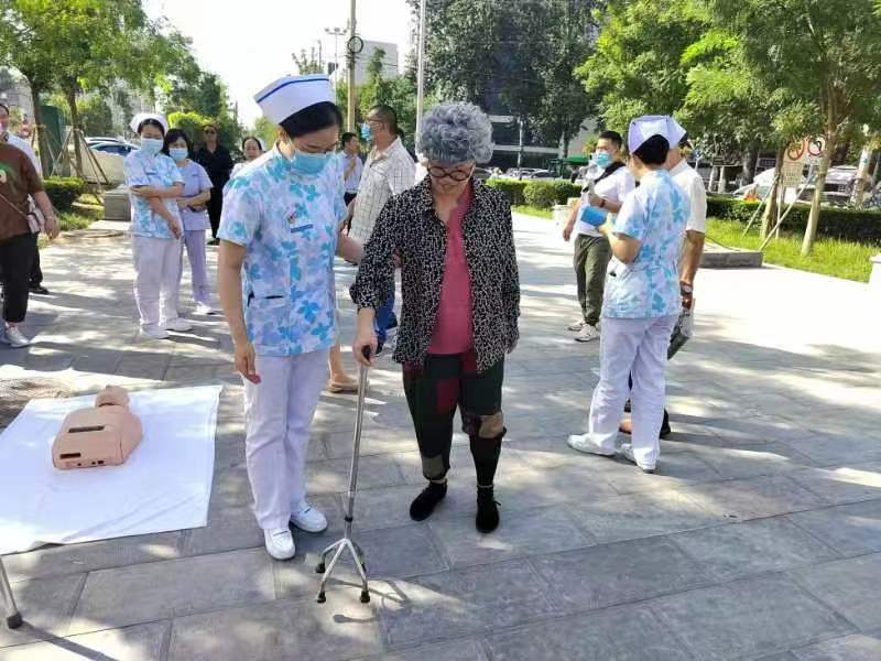 9月18日上午8:30,河北省中医院护理部组织开展护理安全专科小组分别在医院门诊一楼综合服务大厅、中山东路民心河华清街公园,患者安全警示教育活动。本次活动以线上直播与线下互动的方式对跌倒后的正确处理、助行工具的正确使用、胸外按压的正确方法等进行了多种形式开展健康教育。活动以情景剧形式还原老人不慎跌倒后,不同人群的反应和不同处理方式。形象直观地为患者、家属和百姓分辨不同救助处置方式可能造成的不同救治后果。清晰的向公众科普了主动参与跌倒后自我救助的正确处置方法。