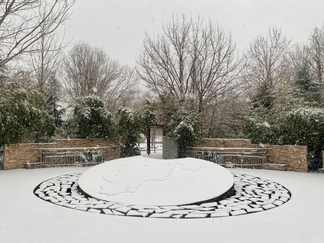 簌簌的雪花在空中飞舞,慢慢地开满了树梢、屋檐,园博园的每一颗树,每一片瓦,每一处细微都沉浸在一片银装素裹的世界里。